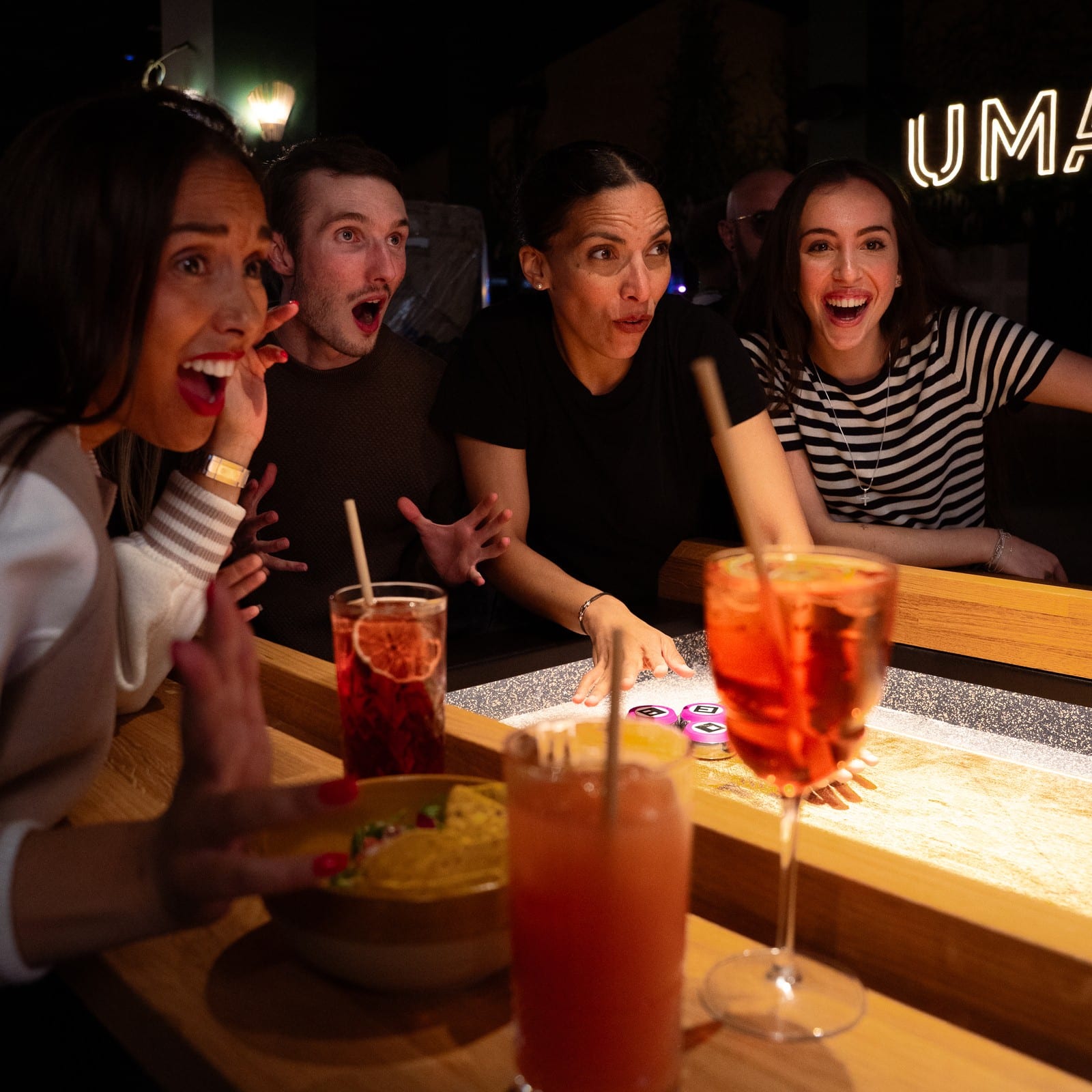 Nous avons une belle et vaste salle de restauration avec terrasse. Le public peut y venir manger de façon autonome, sans forcément jouer. C’est une vraie brasserie avec des influences sud-américaines : tapas revisités, pièces à griller… Tout est fait maison, pas de pizzas industrielles ici ! Vous pouvez également commander à manger au bar, pendant que vous jouez.