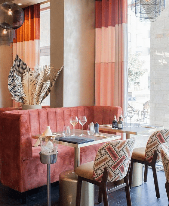 Une vaste terrasse ensoleillée même au cœur de l’hiver. Un intérieur cosy mais aéré à la décoration soignée, saupoudrée de teintes chaudes et de doré. Dans l’assiette, des produits frais cuisinés et présentés avec soin. Des classiques de la brasserie traditionnelle revisités avec des touches exotiques et méditerranéennes.