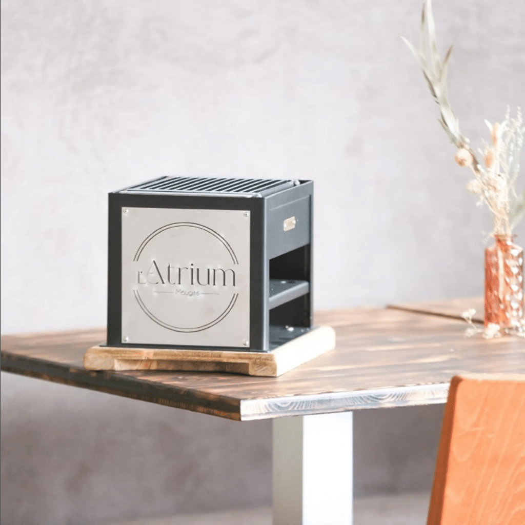 Les braseros de table qui font l’ADN des restaurants Atrium ont été confectionnés sur mesure par un artisan à Megève. On peut y partager, à partir de deux personnes : filets de poulet, de canard, de bœuf, avec en option, le supplément reblochon !