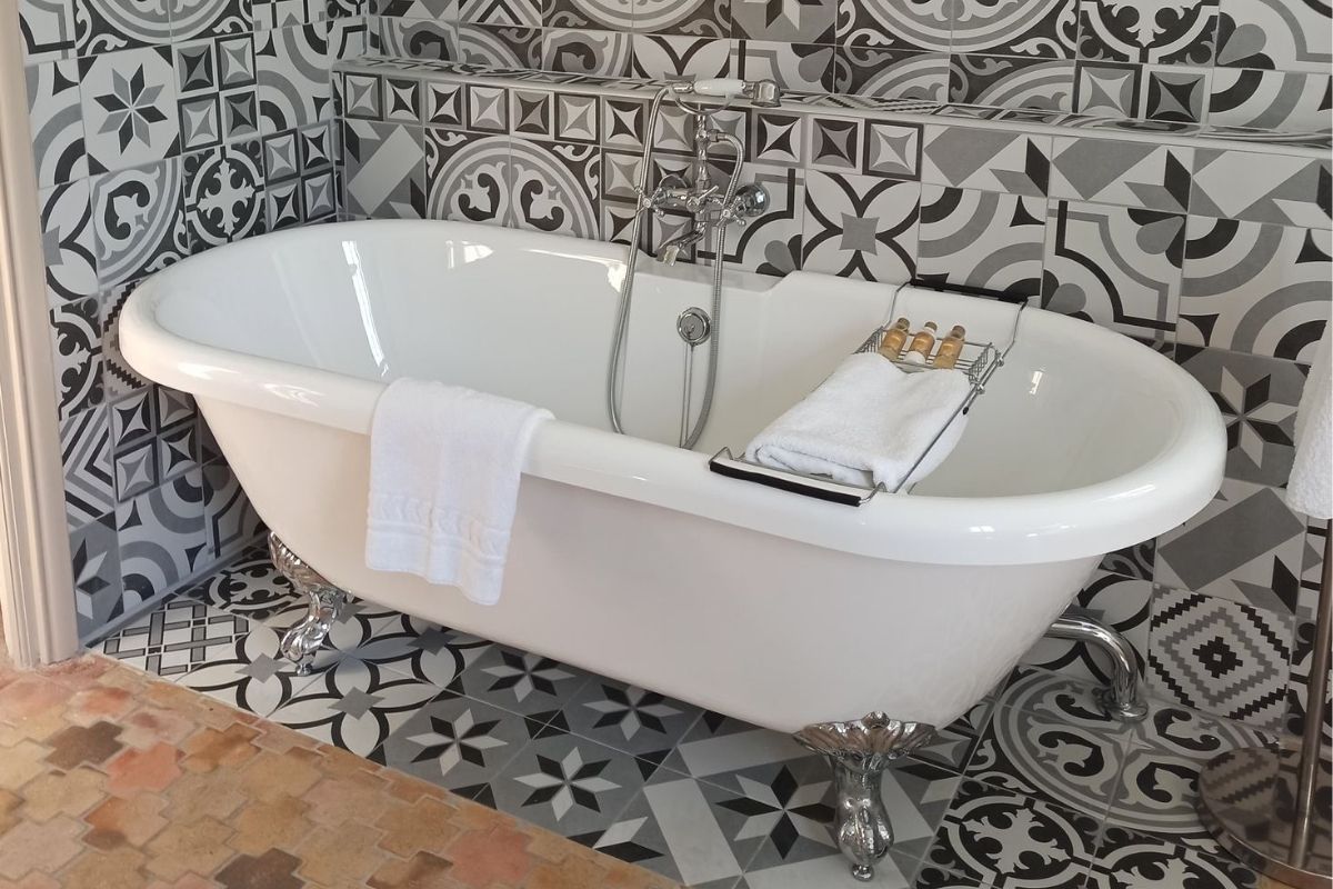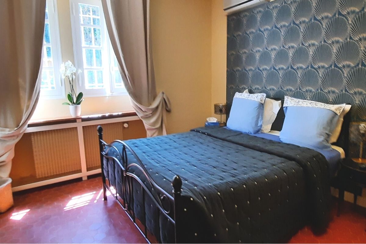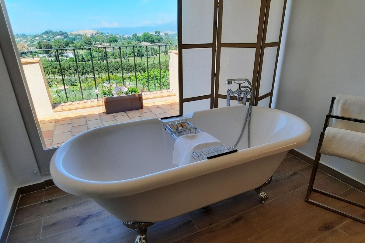 • A l’étage : deux chambres ainsi que deux suites grand confort rénovées avec goût et offrant pour certaines des panoramas superbes. Coup de cœur pour la baignoire sur pieds avec vue plongeante sur le vieux village de Mougins !