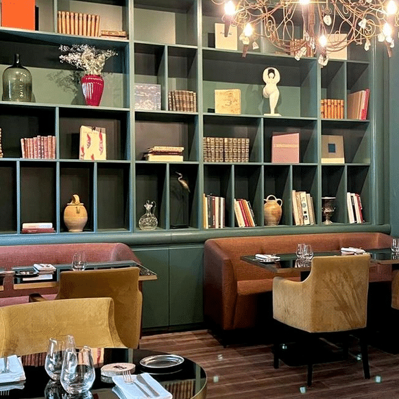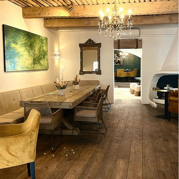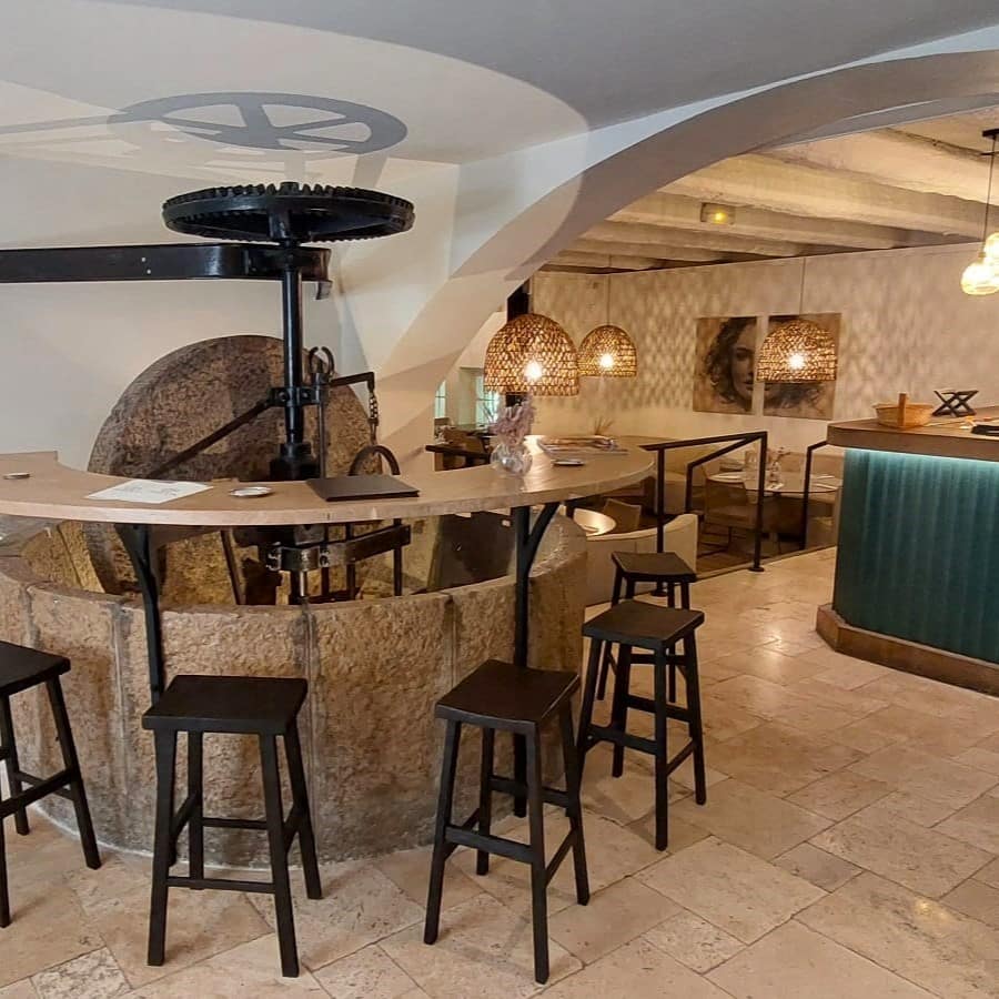 Pari réussi. Entre deux tournages, Mélanie a chiné, imaginé, rêvé une décoration qui lui ressemble, avec différents espaces dotés de leur propre identité, un peu à la façon d’un plateau de cinéma. Le côté verrière en immersion dans la nature, les recoins cosys, la bibliothèque à l’atmosphère feutrée, le bar qui s’enroule autour du moulin d’antan, la longue table en bois travaillé… Au mur, des toiles exceptionnelles mises à disposition par la galerie Mirena installée au village. « Roger Vergé a fait venir de nombreux artistes au Moulin, il y a encore des sculptures exceptionnelles sur la terrasse à l’image de celle de César. Je souhaite poursuivre cette démarche et convier l’art au restaurant autant que possible, profiter de cet espace exceptionnel pour mettre en lumière des œuvres, organiser des expositions temporaires. Je voudrais que nos clients ressentent les bonnes ondes des personnages illustres qui sont passés par ici, qu’ils s’y sentent aussi bien que moi que m’y sens. J’y ai mis toute mon âme, c’est ma deuxième maison. Et il y a encore de jolis projets à venir ! »