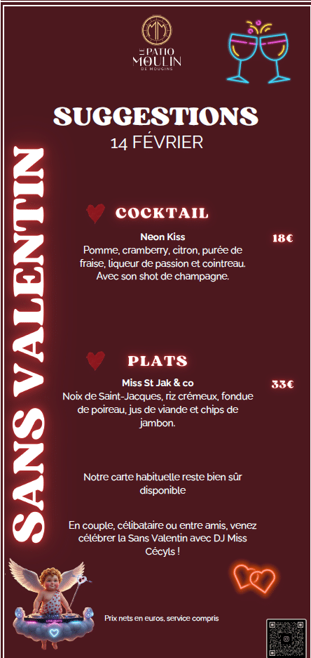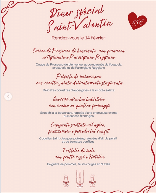 À l’occasion de la Saint-Valentin, offrez-vous une parenthèse gourmande à Mougins. Pour célébrer l’amour, nos restaurateurs ont imaginé des menus spécialement conçus pour l’occasion : accords raffinés, produits de saison, inspirations créatives et attentions délicates. Cliquez sur les propositions et faites votre choix ! Pensez à réserver 🩷