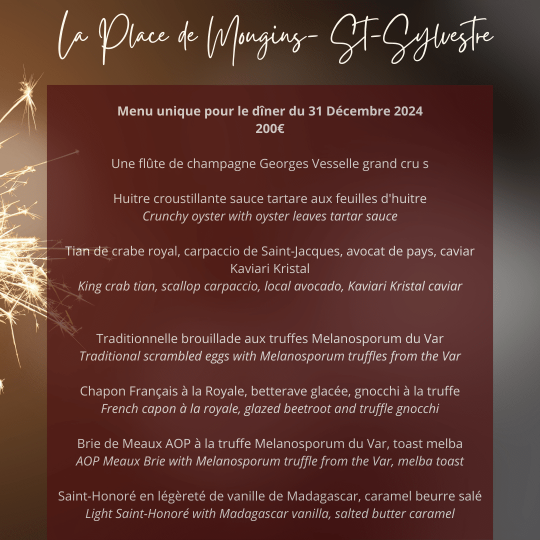 Mougins, capitale de la gastronomie vous propose des menus gourmands & gastronomes pour les fêtes à venir !